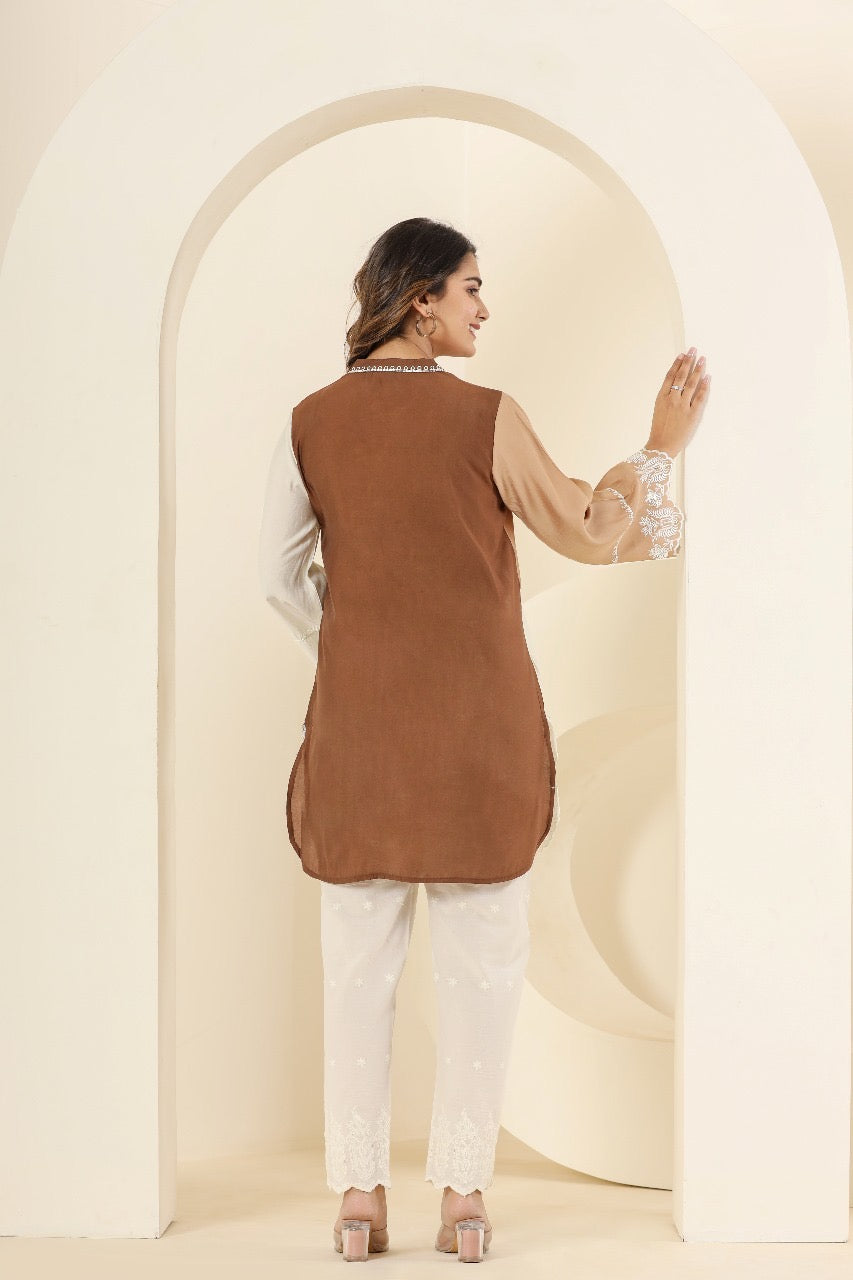 Minimal contrast, maximum charm – this coord set pairs earthy brown with crisp white for a refined balance of bold and subtle. Comfortable, chic, and versatile – perfect for your everyday fits.