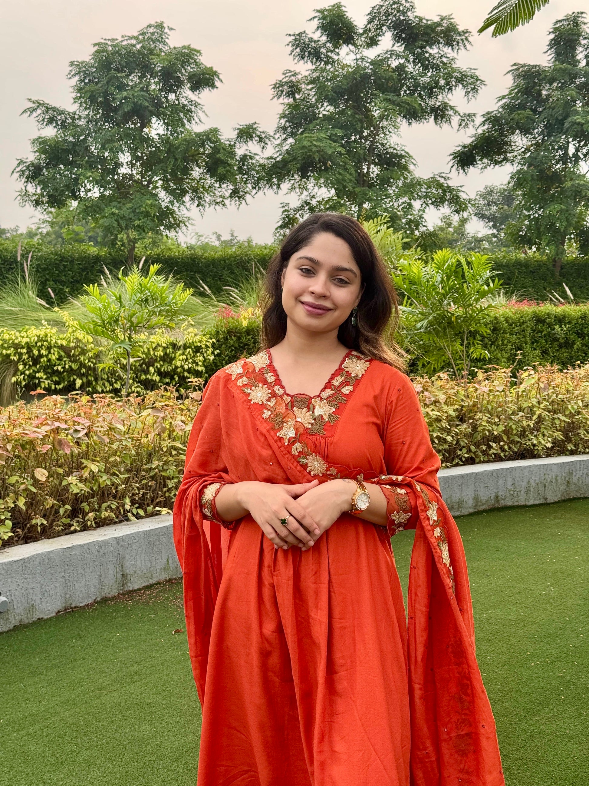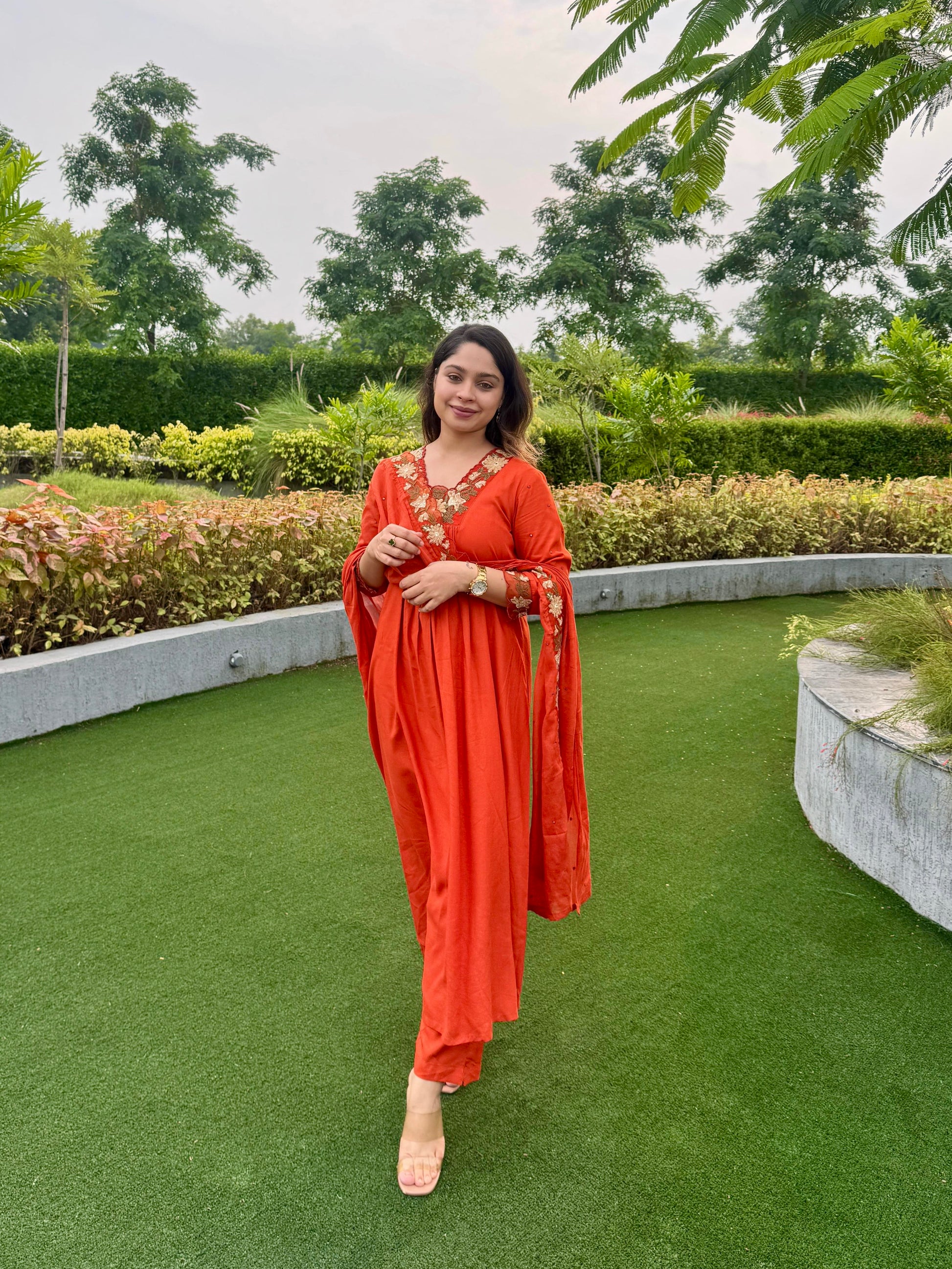 A warm embrace of rust tones with intricate embroidery at the neckline, this 3-piece set is a perfect blend of elegance and tradition. Flowy, festive, yet easy enough for everyday charm – a true Easefolk classic.
