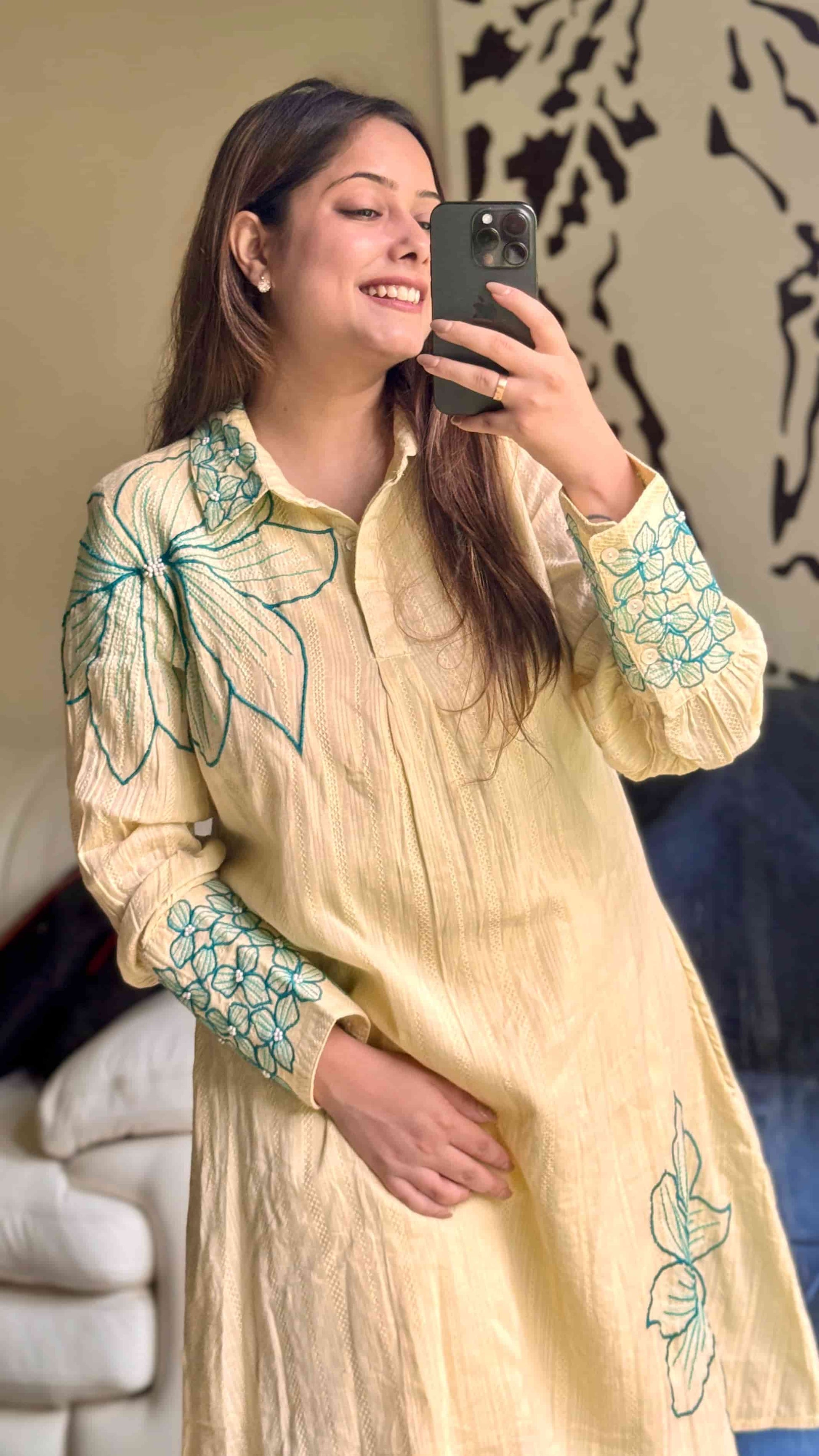 Off-White Flower Embroidered Set