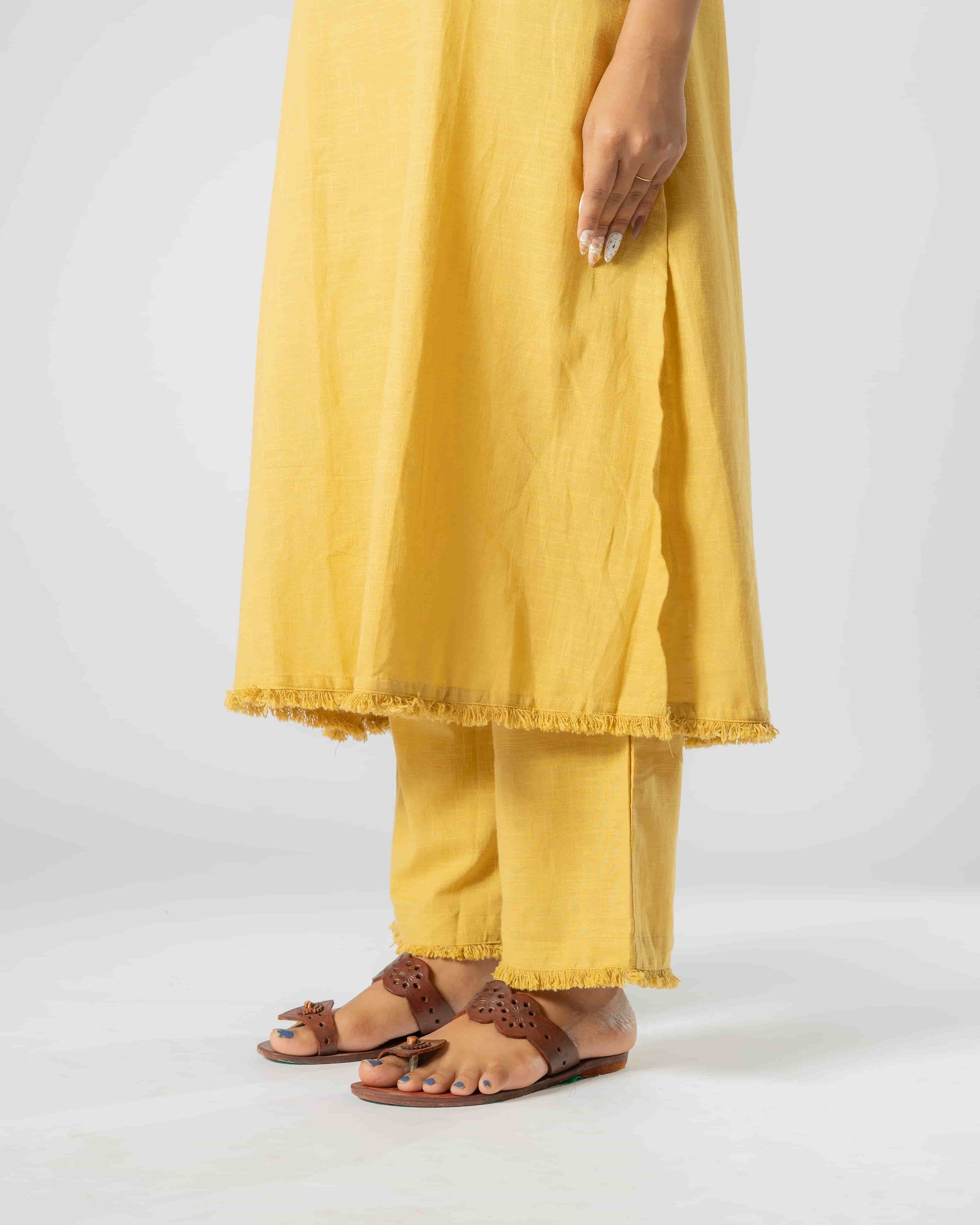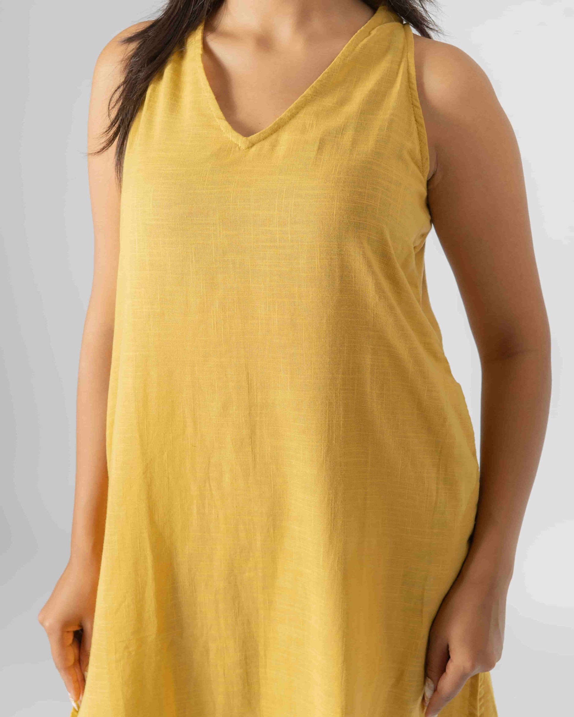 Crafted in pure khadi, this halter neck yellow coord set is the perfect blend of simplicity and sunshine. Breezy, minimal, and effortlessly chic – it’s your go-to piece for everyday elegance with a hint of bold charm.